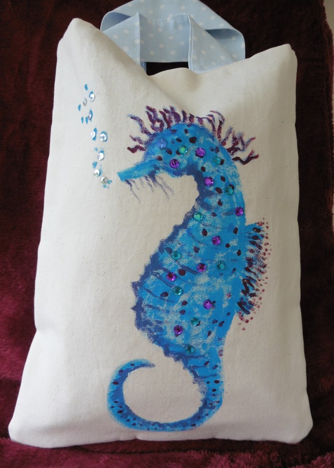 Previous ImageNext Image P1050048 (2) A hand made tote bag in cotton. Beads sewn on for added interest 10″ X 12″ £11 inc. postage